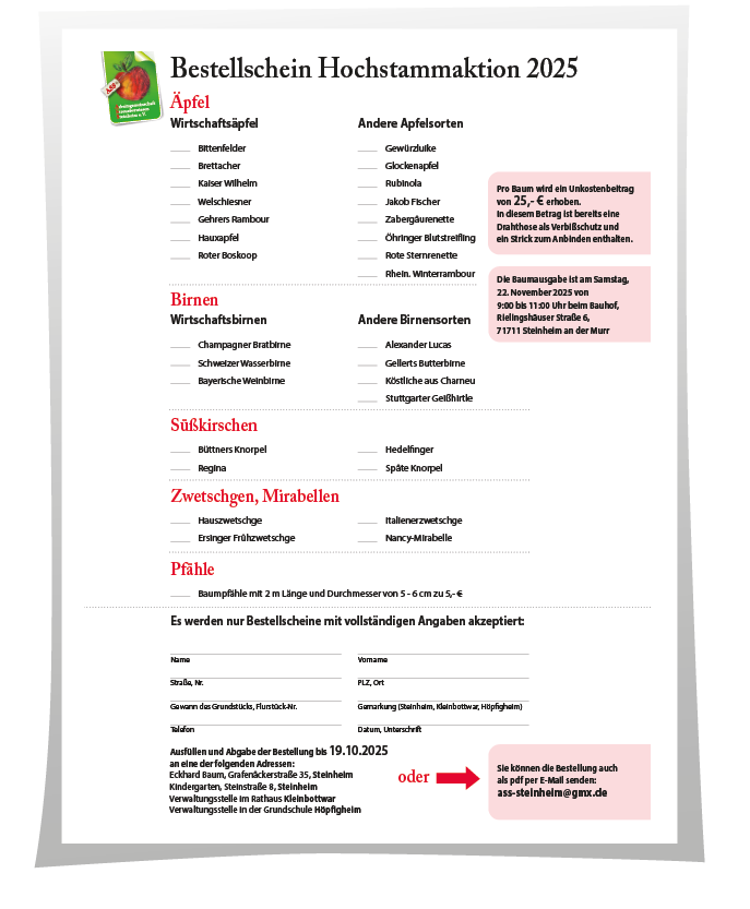 Interaktiver Bestellschein hier herunterladen, ausfüllen und an ass-steinheim@gmx.de schicken